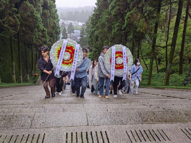 6月1日上午,全体人员首先来到井冈山革命烈士陵园,向人民英雄敬献花圈,默哀悼念,表达对人民英雄的深切缅怀和崇高敬意。