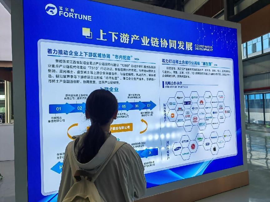 课题组一行先行前往公司的永利皇宫长廊参观走访,人事部干部黄小爱向课题组成员详细介绍了富尔特公司从创建、发展到壮大的演变历程,帮助课题组成员深入洞悉该公司的生产经营方向。黄小爱表示,公司始终坚守“以稀为贵,以土为金”的创立初衷,致力于实现稀土资源的“共同富裕”,并鼓励课题组成员将“稀土精神”运用于调研工作之中。